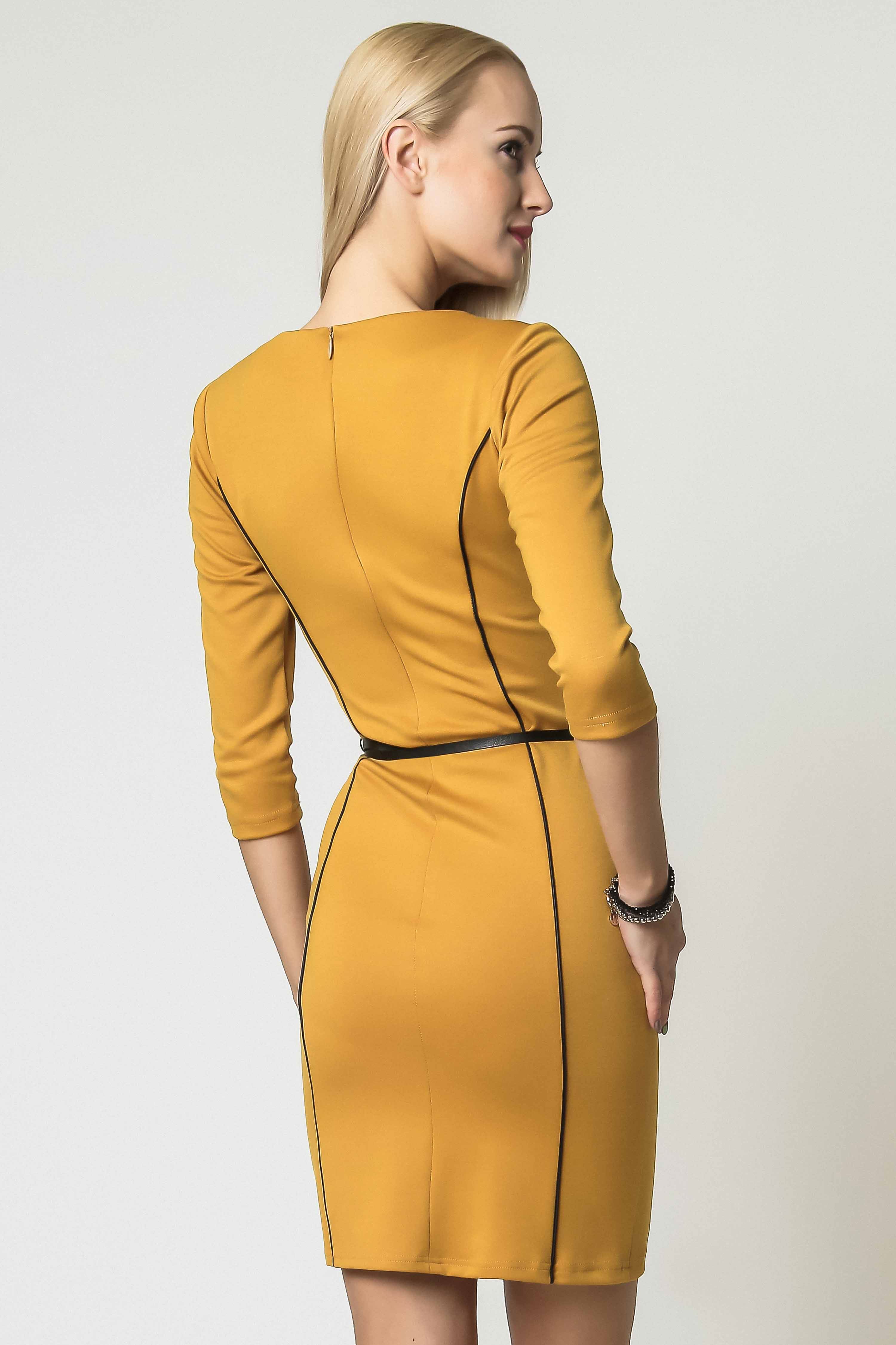 Everyday dress, made of soft and pleasant to the touch fabric. The cut is simple and fitted with fashionable cuts, finished with piping. The cut is simple and fitted with fashionable cuts, finished with piping. A decorative belt is attached at the waist, a hidden zip fastener at the back.